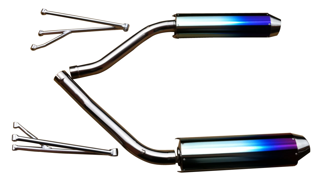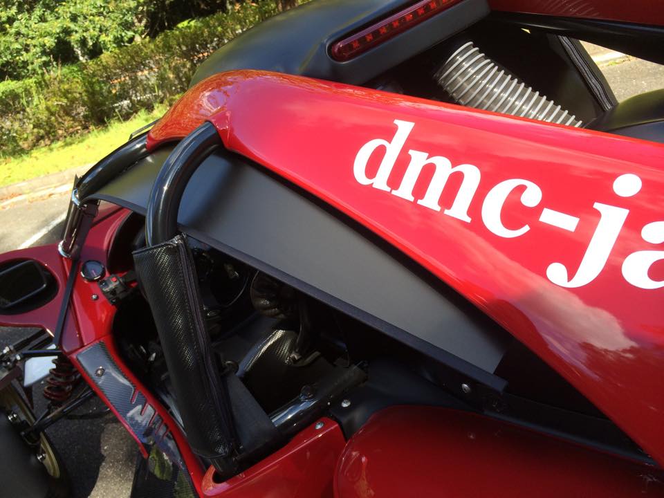 純正マフラーに比べ、よりトルクと加速力をUPさせ、T-REXの力を最大まで引き出してくれる『DMC T-REX専用ダブルマフラー』。虹色に輝くメタリックな外観は、ボディーに溶け込むことなく存在感をアピール。サーキットバイクのように迫力ある排気音と共にドライブを楽しませてくれます。